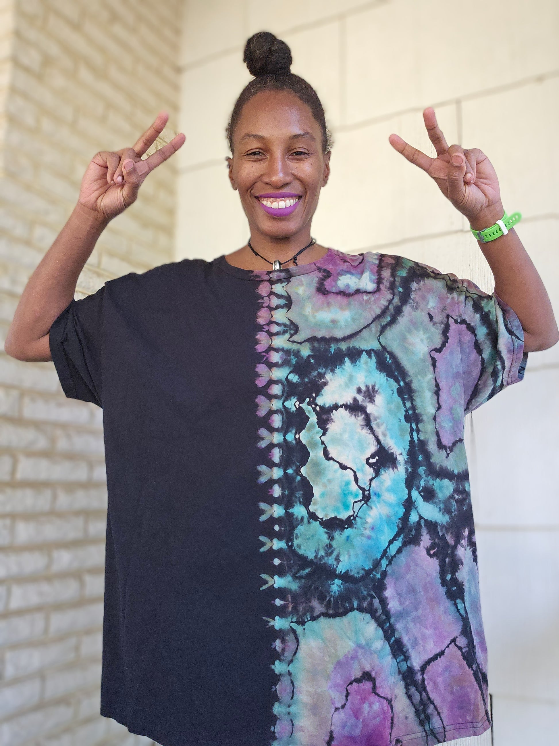 • Wearable art with long lasting fiber reactive dyes. Each piece is one of a kind with ice dyeing and made with positive vibes and reiki infused!!