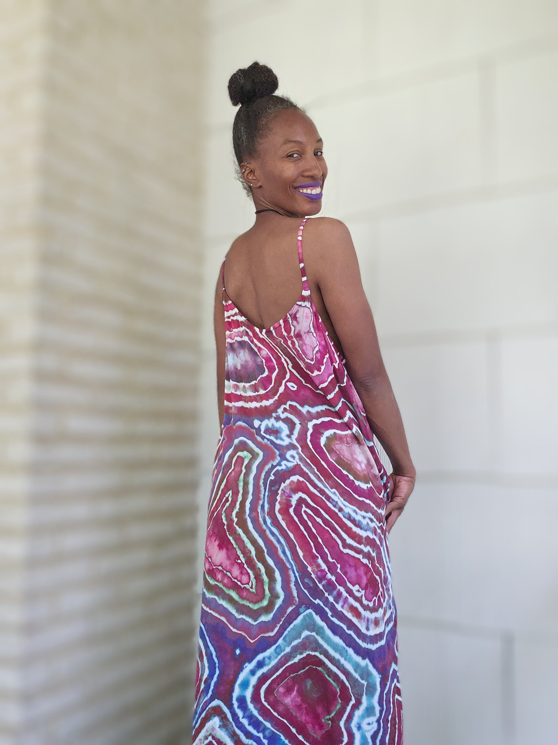 • Wearable art with long lasting fiber reactive dyes. Each piece is one of a kind with ice dyeing and made with positive vibes and reiki infused!!