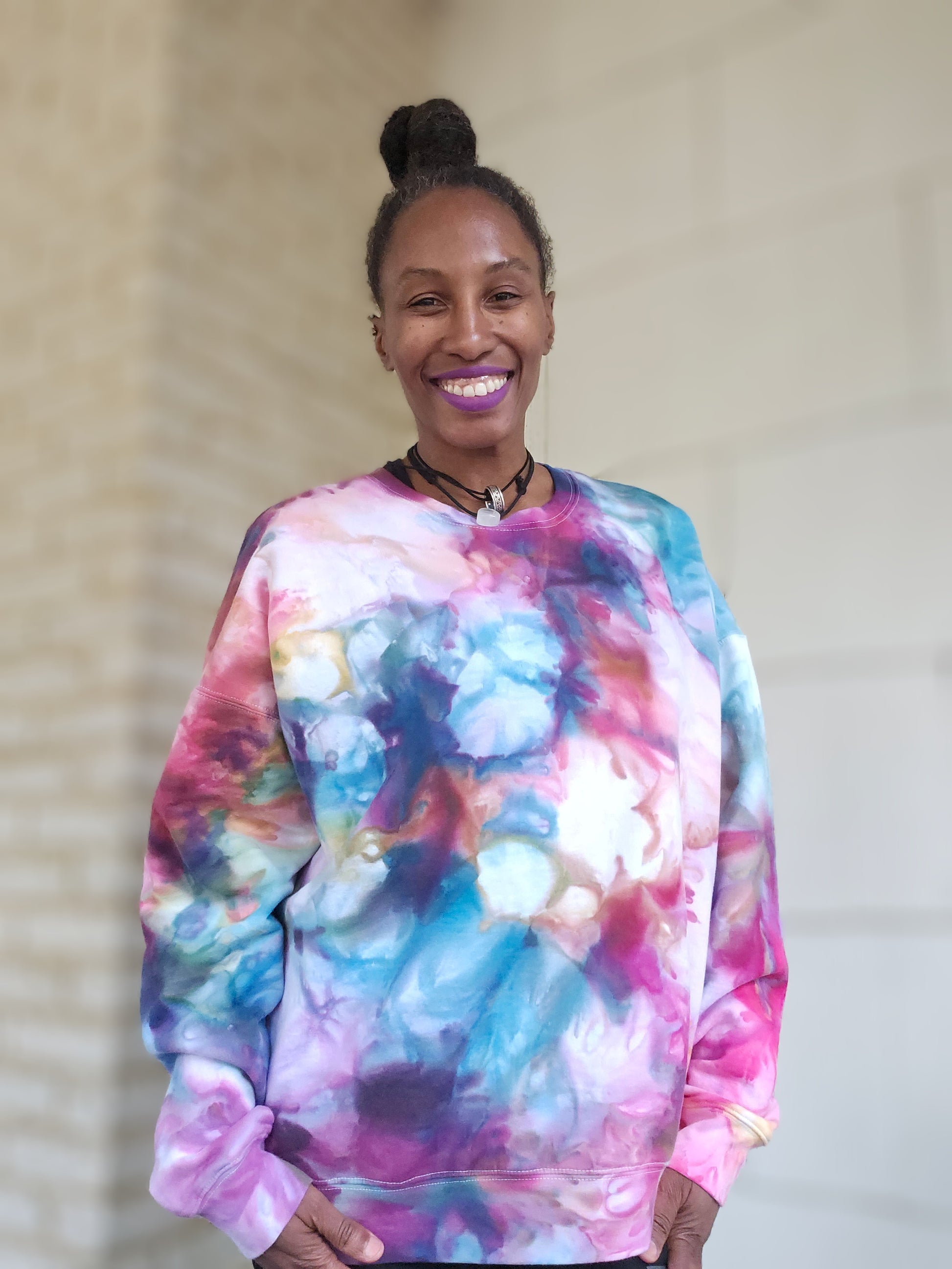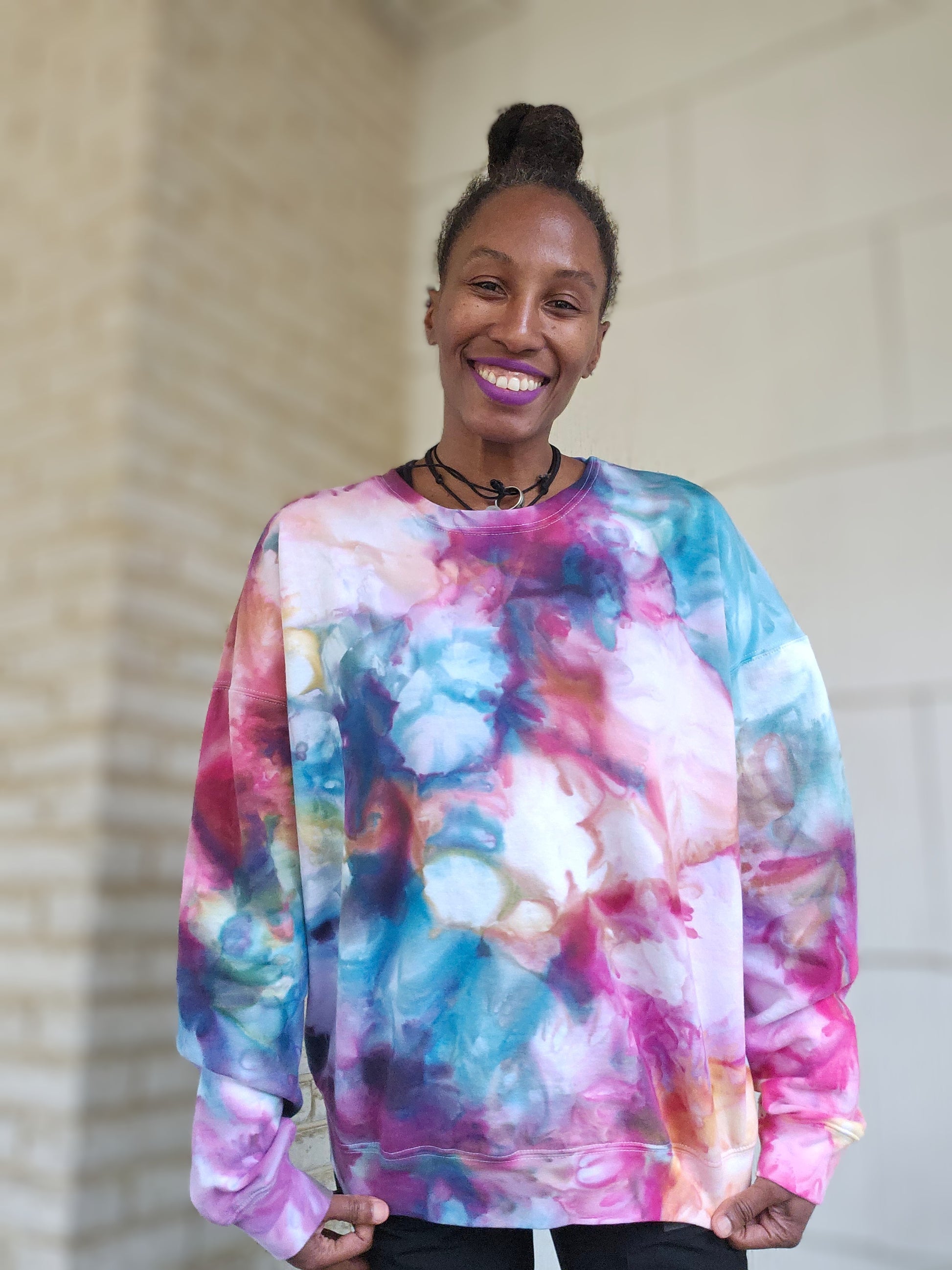 • Wearable art with long lasting fiber reactive dyes. Each piece is one of a kind with ice dyeing and made with positive vibes and reiki infused!!