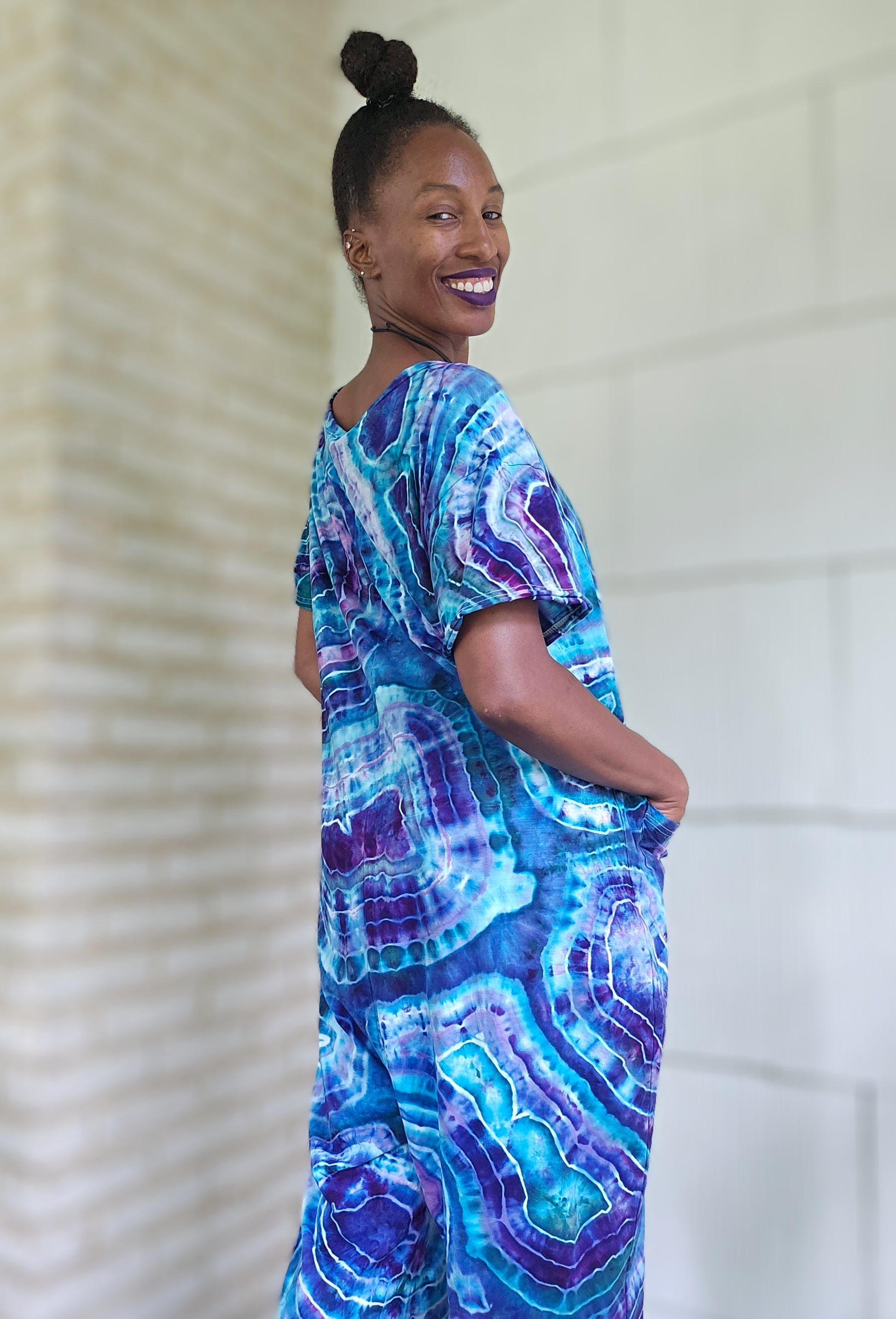 • Wearable art with long lasting fiber reactive dyes. Each piece is one of a kind with ice dyeing and made with positive vibes and reiki love!!