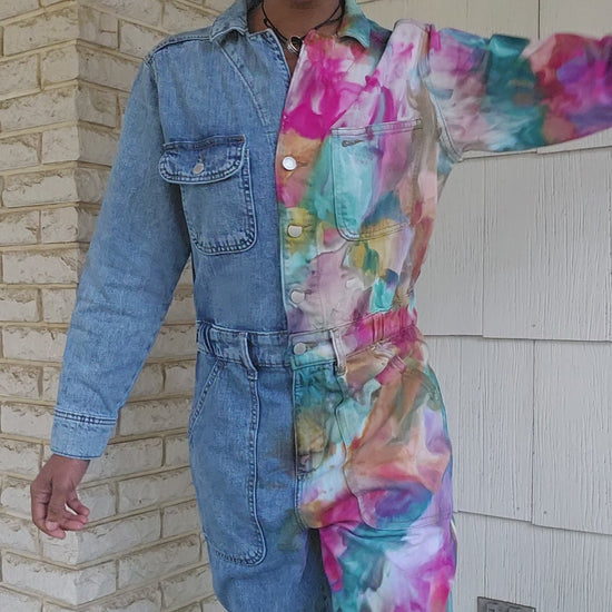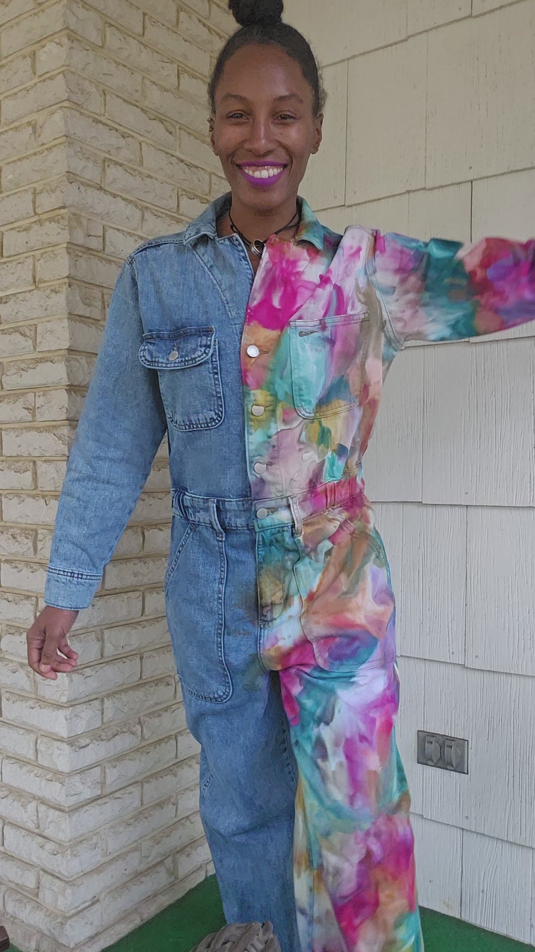 Size 6 Women's Long Sleeve Utility Baggy Denim Jumpsuit Split Personality Chakra Edition