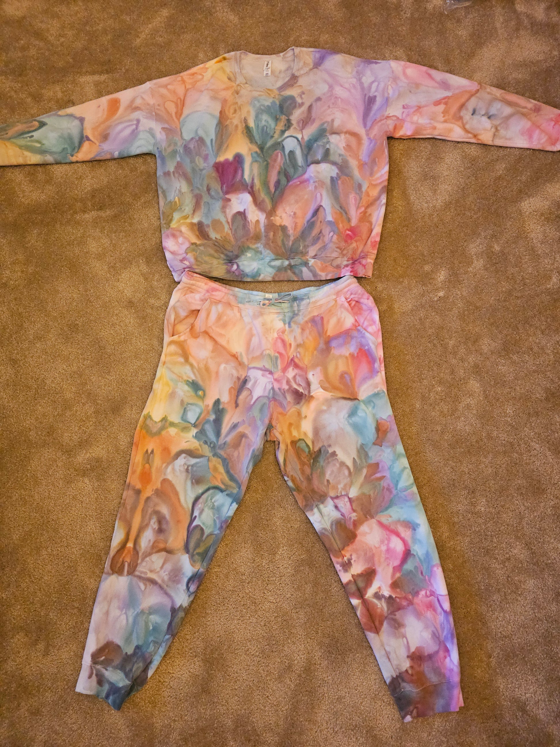 • Wearable art with long lasting fiber reactive dyes. Each piece is one of a kind with ice dyeing and made with positive vibes and reiki infused!!