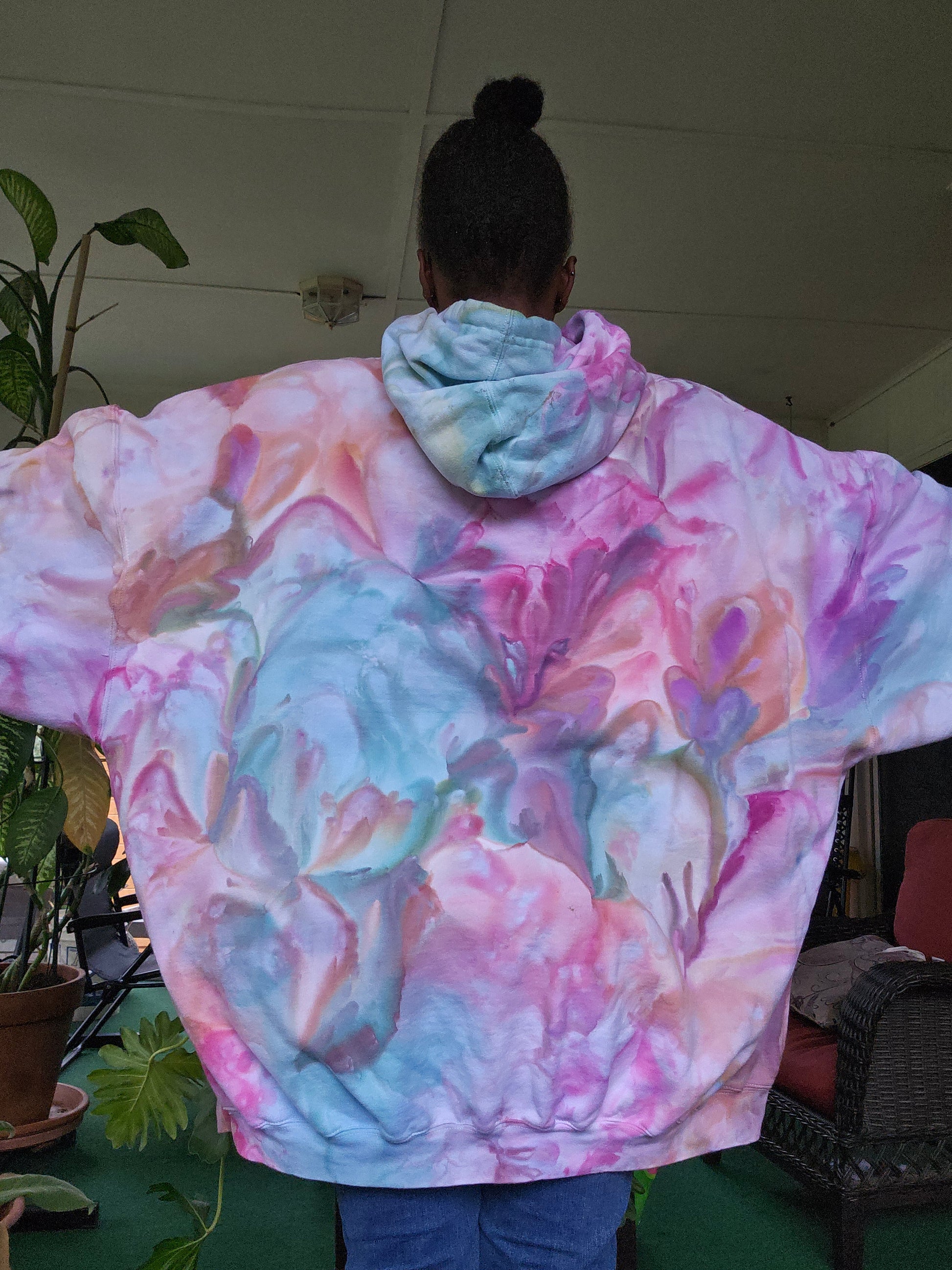 • Wearable art with long lasting fiber reactive dyes. Each piece is one of a kind with ice dyeing and made with positive vibes and reiki infused!!