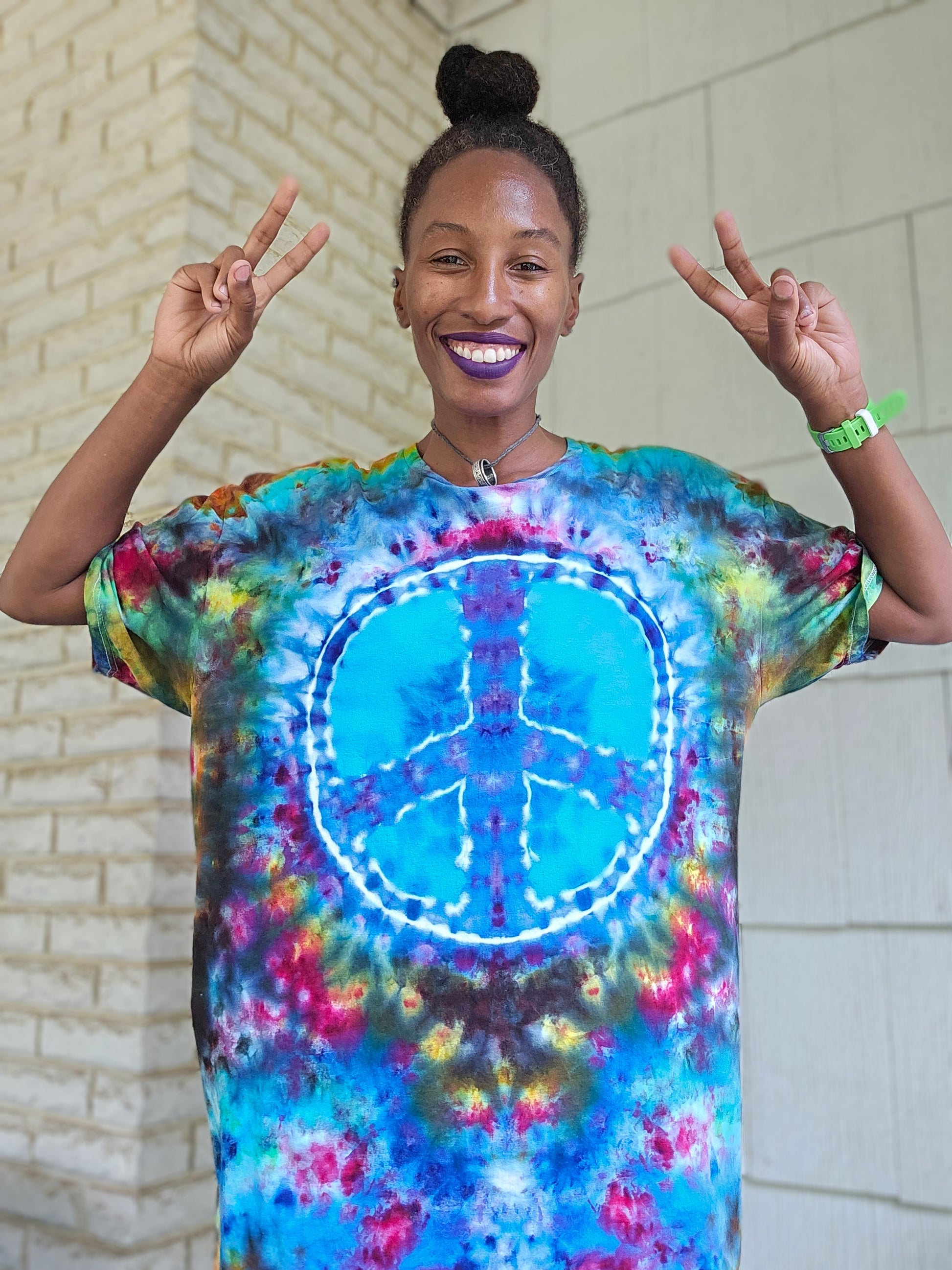 • Wearable art with long lasting fiber reactive dyes. Each piece is one of a kind with ice dyeing and made with positive vibes and reiki infused!!