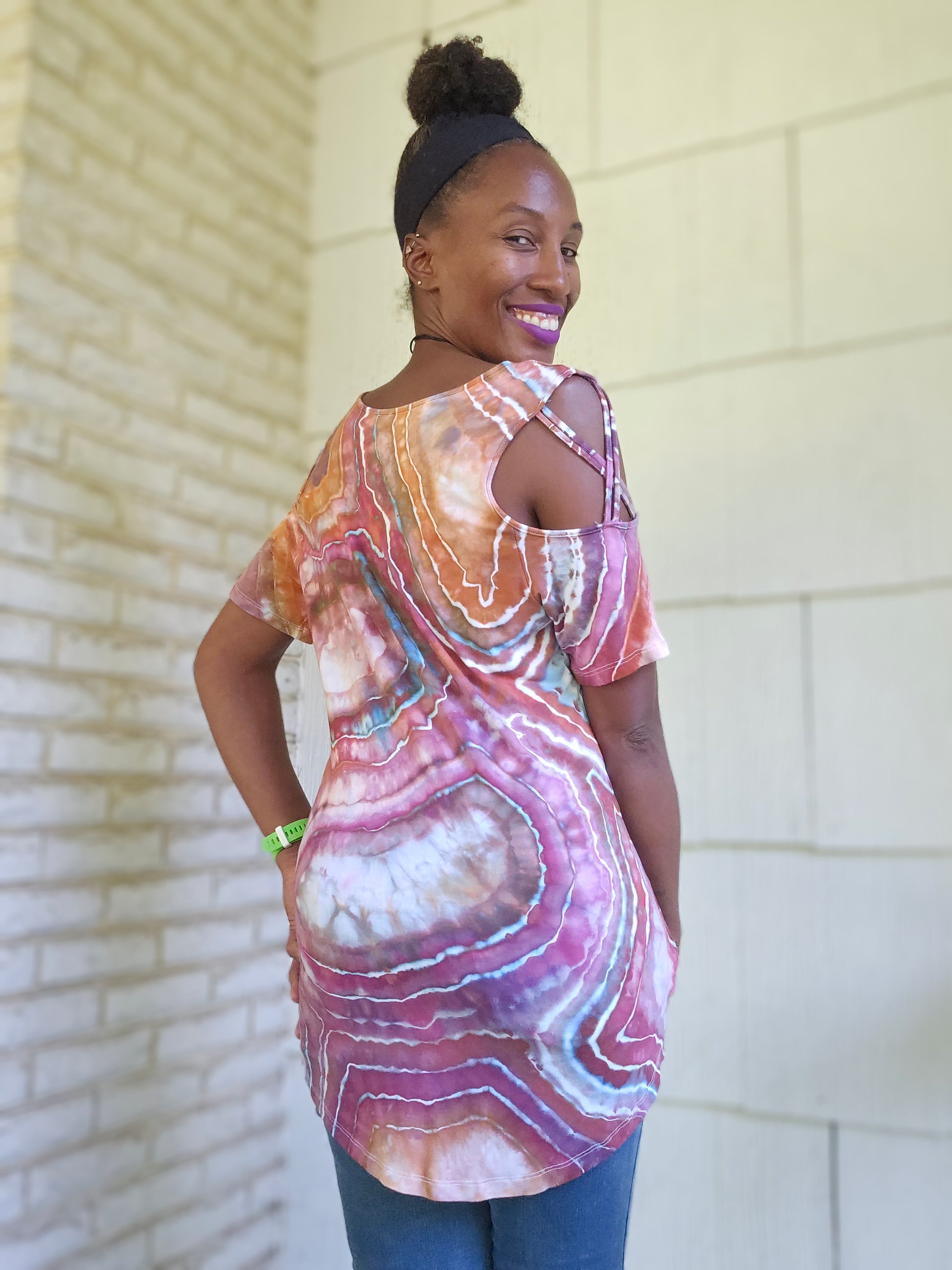 • Wearable art with long lasting fiber reactive dyes. Each piece is one of a kind with ice dyeing and made with positive vibes and reiki infused!!
