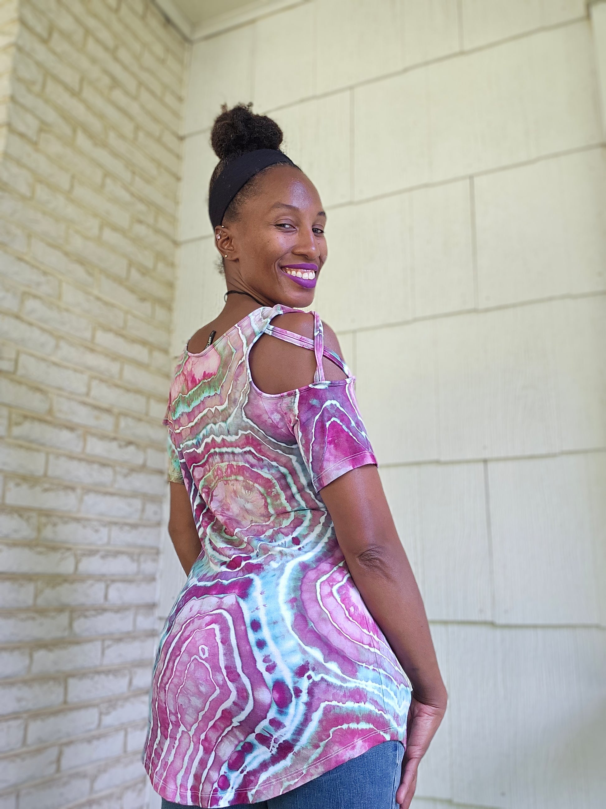 • Wearable art with long lasting fiber reactive dyes. Each piece is one of a kind with ice dyeing and made with positive vibes and reiki infused!!