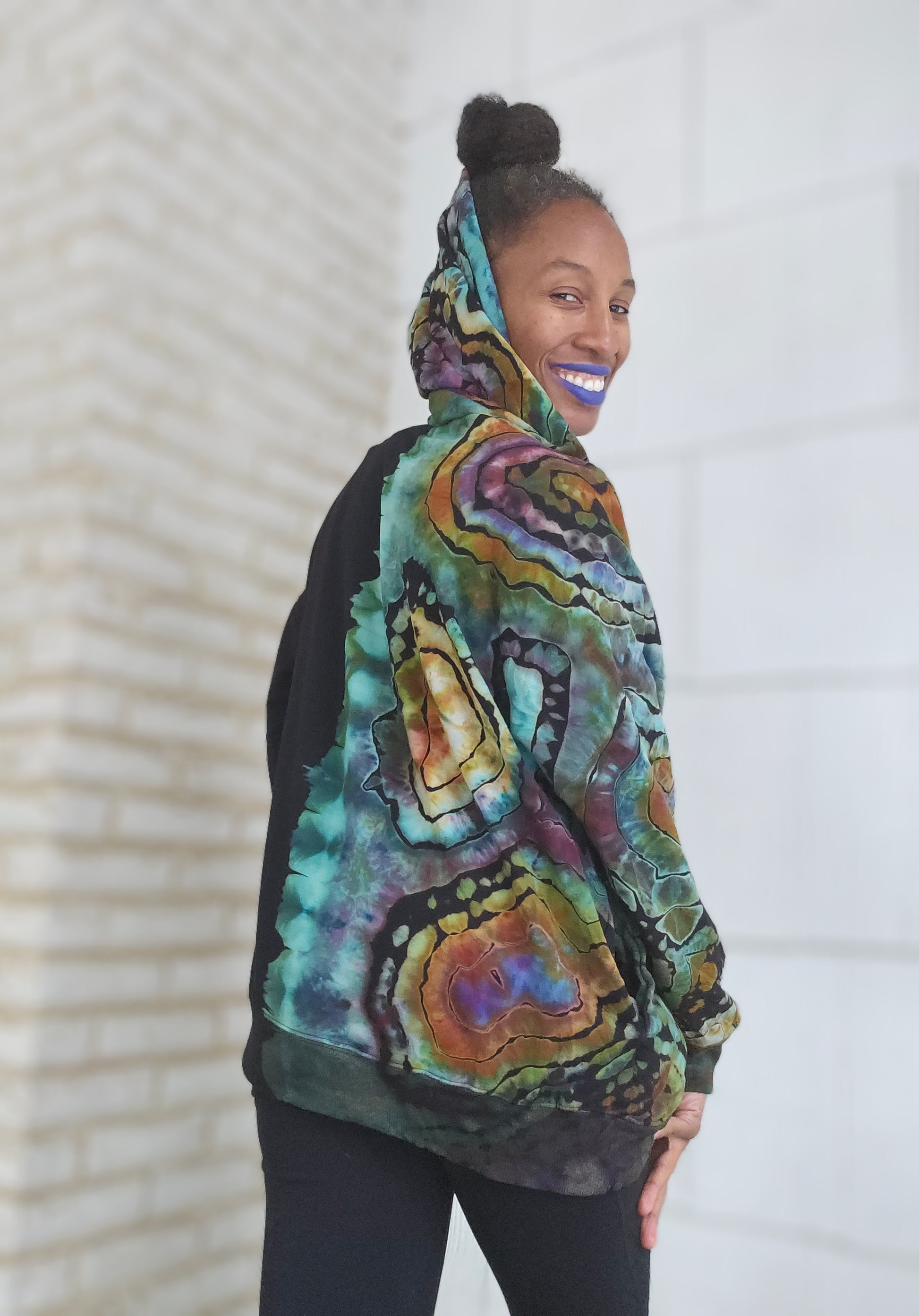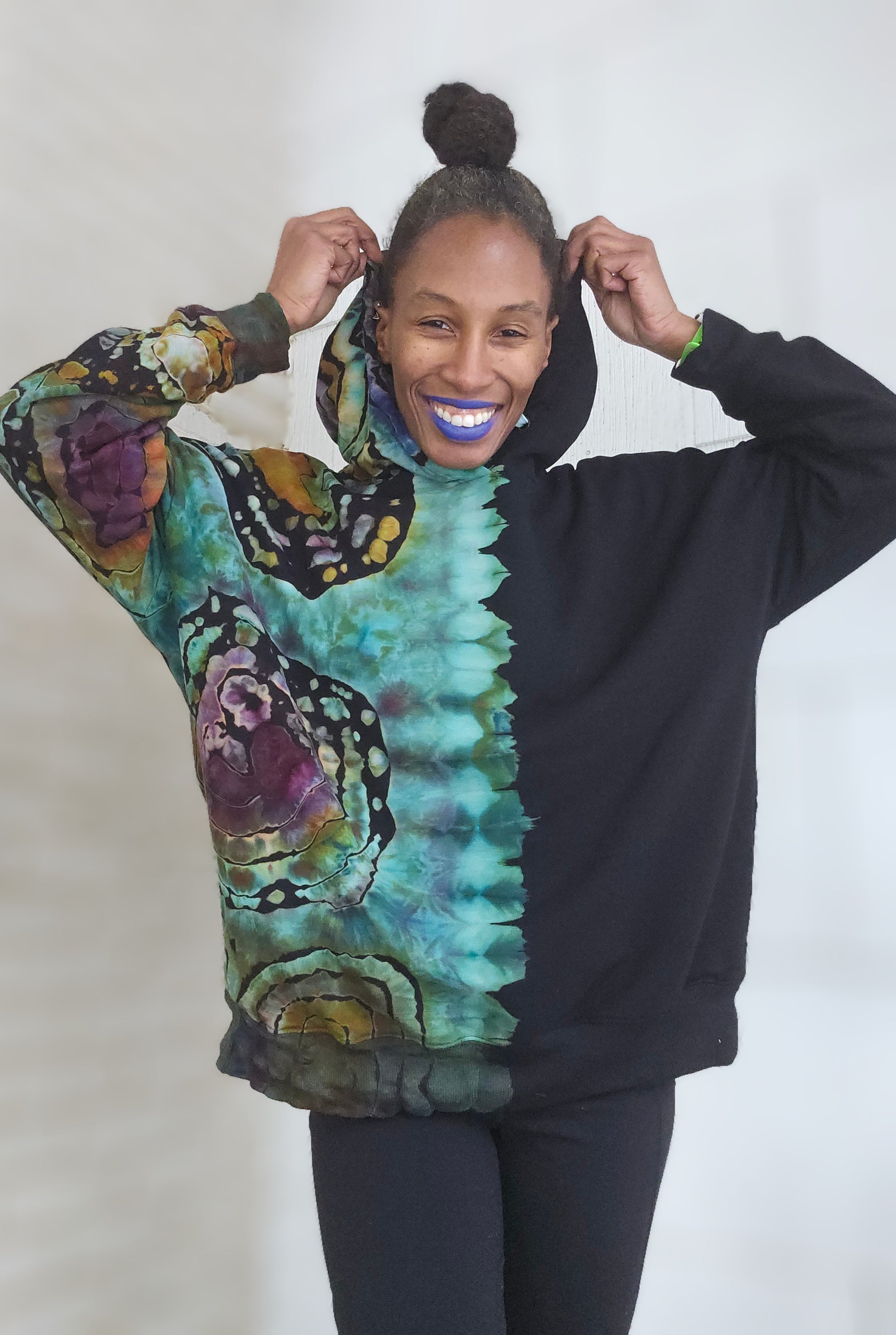 • Wearable art with long lasting fiber reactive dyes. Each piece is one of a kind with ice dyeing and made with positive vibes and reiki love!!